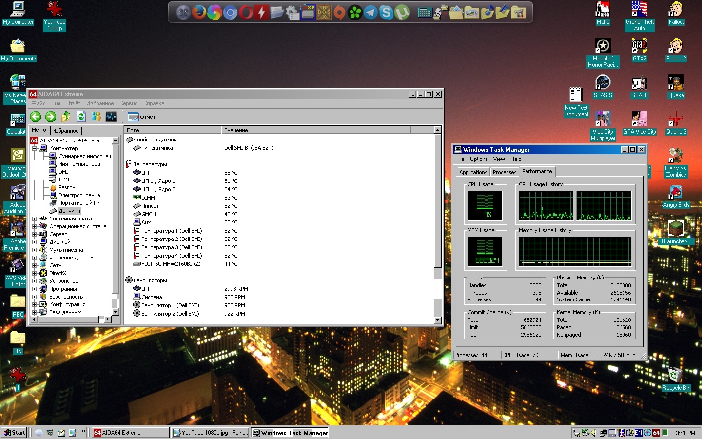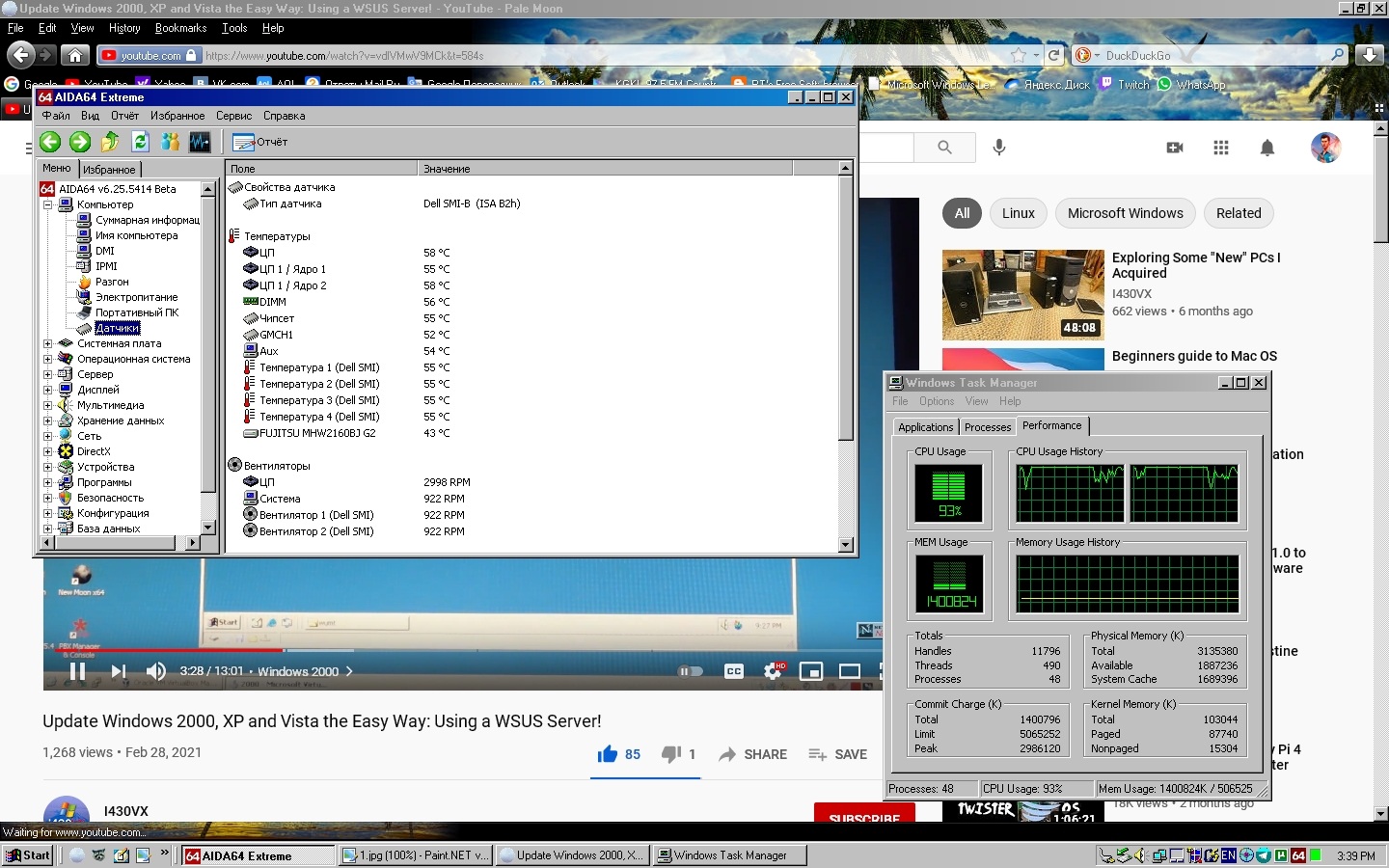 Температура без нагрузки под ОС Windows XP/Vista/7/10 примерно 35-40 градусов, под нагрузкой обычно 60-65 градусов. Под Windows 2000 с включенным SpeedStep (вкл\выкл в BIOS) температура в простое около 65-70 градусов. (независимо от нагрузки, если открыть тот же ютуб в 1080p, будет от 70 и выше) Если выключить SpeedStep, то температура понижается до 52-54 градусов. Что вроде бы ниже, но всеравно почему-то горячее, чем надо. Под нагрузкой доходит до 60 градусов. Как итог, кулер постоянно работает на повышенных оборотах и сильнее высаживается батарея. Для примера скриншоты температур в простое и под нагрузкой ютуба в 1080p качестве. Разница совсем небольшая. Если отключить одно ядро в BIOS, то температура приходит в норму, в простое 35 градусов. Но это уменьшит производительность в два раза. Можно ли как-то это исправить? Может у кого-то есть опыт использования 2000-ой на двух-ядерных ЦП с такой проблемой? (Ставить другую ОС не хочу, мне нравится то, что 2000-я легкая, плюс многое в ней уже настроено под работу, переносить всё это очень долго. Для офисной работы и серфинга в сети вин2000 норм.) |