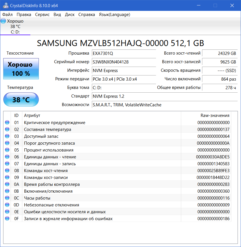 На компьютере установлена Windows 10 x64. Где-то полгода назад был приобретён SSD NVMe Samsung 970 Evo Plus и установлен в качестве системного.