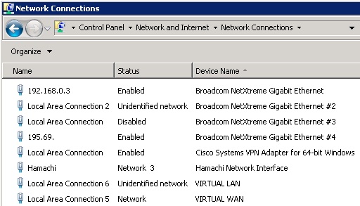 Профиль | Отправить PM | Цитировать ipconfig /all с сервера покажите. закройте "х" последние актеты внешних адресов, а не первые.. вроде 217.87.ххх.ххх , чтобы было видно, что это внешние интерфейсы.
