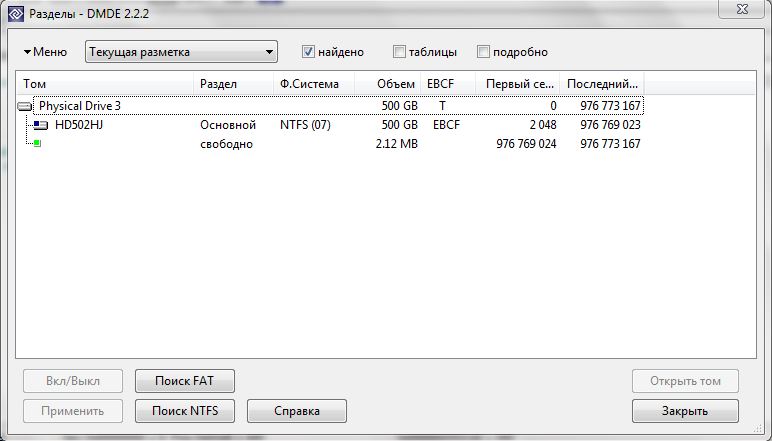 Но сначала надо восстановить разделы. Для этого: 1. Скачиваете дисковый редактор DMDE (не требует установки и можно с флешки запускать) DMDE - DM Disk Editor and Data Recovery Software GUI для Windows Windows 9x/ME/2K/XP/Vista/7. http://dmde.ru/download.html 2. В DMDE из меню разделы покажите скриншот с разделами для данного харда. 3.. Сервис ===> Копировать секторы и копируете 100 (сто) первых секторов (LBA = 0..99) в файл и выкладываете его на обменние. Пока всё. ЗЫ Есть интерфейсные ошибки --- атрибут 199. : штук немного, но в идеале должен быть ноль. Цитата misha2: