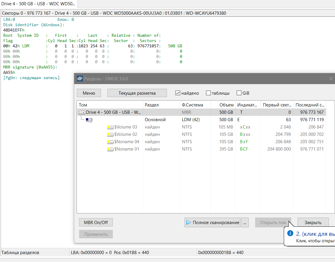 есть HDD на 500 Гб (смарт приложил), там 2 раздела, раньше на одном из них стояла ОС (Win 7), второй был просто для хранения файлов. Затем купили SSD, ОС установили на него (также Win 7), через какое-то время этот HDD перестал определяться в системе и вызывал дикие тормоза при запуске ОС. Подключил его к другому ПК (на Win 10) пока по USB (с внешним питанием), вот скриншот с DMDE, видно, что разделы он нашел (после прогона "Найти больше разделов"). Оба раздела открывал, вроде файлы на месте. Но в бесплатной версии целая история их восстановить. Помогите пожалуйста восстановить оба раздела и данные на них. |