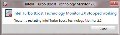 Здравствуйте! Поставил Windows 8 CP x64, установил драйвер турбобуста с сайта интел, при запуске получаю ошибку(смотреть картинку), перезапуск не помогает. Кто сталкивался? Как чинили?