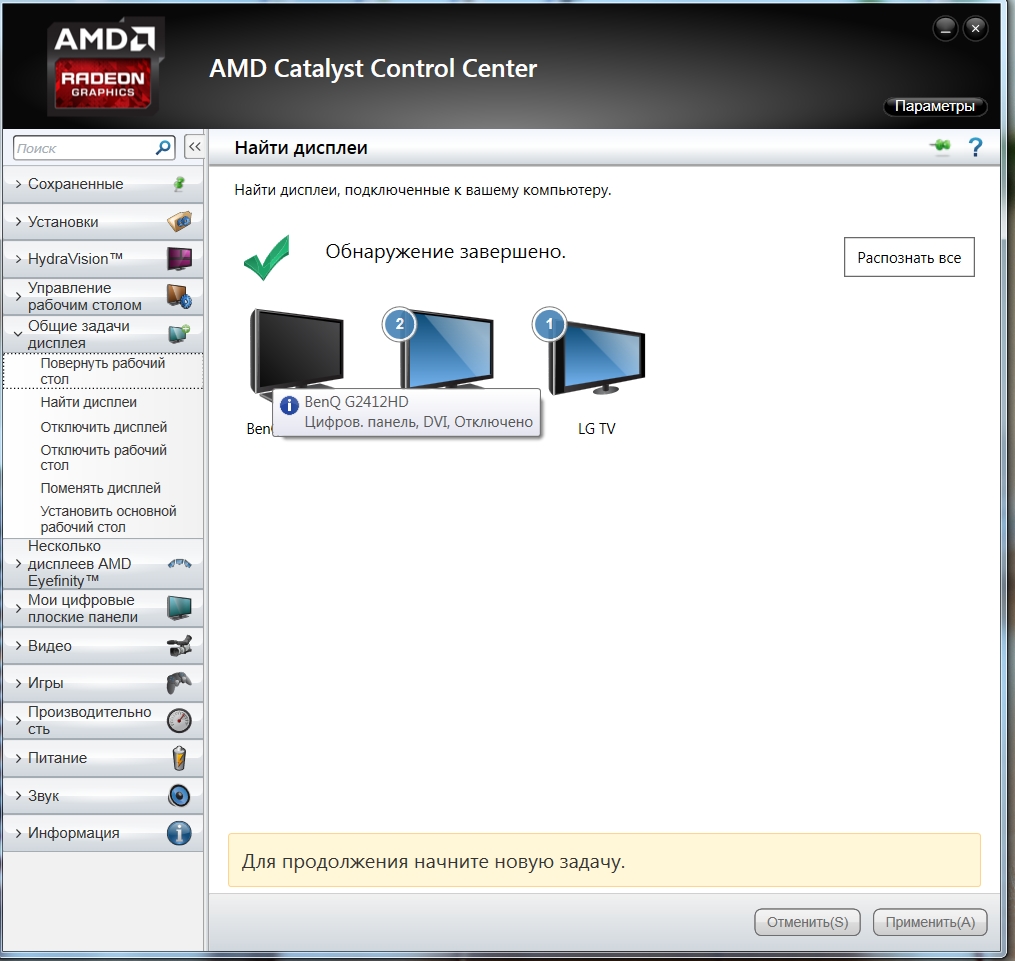 Видеокарта к Asus Ati Radeon HD7750. Подключено телевизор по HDMI, два монитора по DisplayPort и DVI. В драйвере один монитор отключен. Как сделать, чтобы работали все три монитора. Если в драйвере подключаешь отключенный, выключается другой. Спасибо