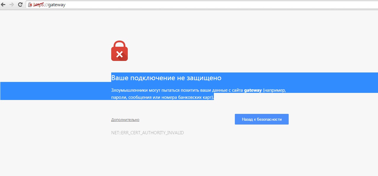 Имеется сеть AD + Kerio На клиентской машине при попытке зайти на шлюз керио через браузер https://gateway/ выдает ошибку : Ошибка нарушения конфиденциальности Ваше подключение не защищено |