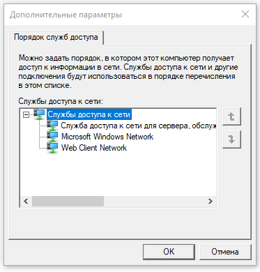 - Отключил Netbios в свойствах подключения интернета. - По IP на обменник зайти можно. - в локальном подключении наоборот включил Netbios. - Отредактировать очередность использования интерфейсов в Дополнительных параметрах не получилось. У меня только такой интерфейс на компе (на прикрепленной картинке). |