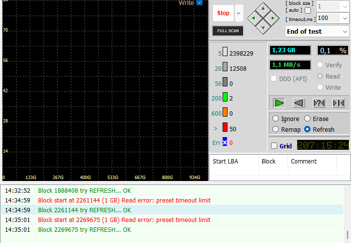Привет. Поможете по victoria hdd. Виндовая версия, mbr отключил. Делал по умолчанию скан, ничего не нашло, делаю рефлеш по умолчанию выдало 250 как то так блоков, отрефлешило. Думаю дай уменьшу скан блока, сделал меньше, повторно выдало больше тыщи блоков, но всё отреставрировало. Но щас делаю скан по одному блоку, 48 блоков за 1гб нашло. Но это очень долго. Вот думаю поможет ли тут erase? Очистяться ли пендинги в смарте до 0. Смарт на фото.