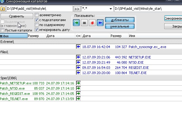 слева файлы из нового винстайла их добавить соблюдая пути . а справа из старого которые нужно удалить