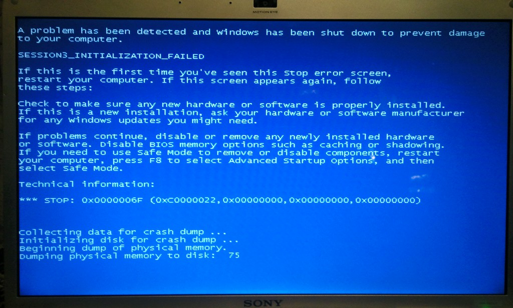 Загрузка - Синий экран Session3_Initialization_Failed STOP 0x0000006F