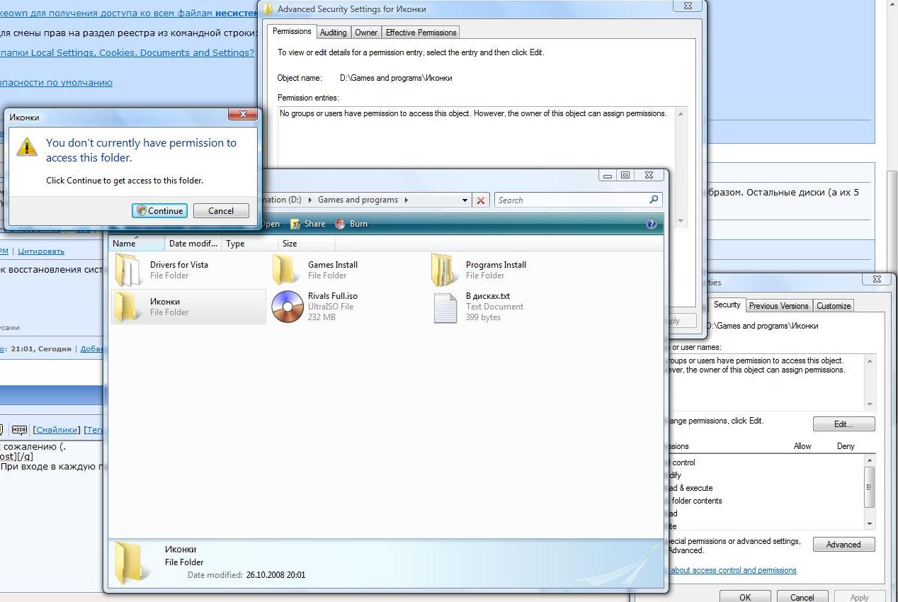 Как получить доступ к файлам, папкам, разделам реестра в Windows Vista