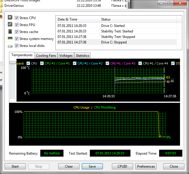 Intel Core 2 Quad Q8200 PCI-E 512MB Sapphire Radeon HD 4850 DIMM DDR-2 1Gb Samsung PC 6400x2 Seagate Barracuda 7200.12ST3500418AS Б.П ATX 500W Gembird CCC-PSU6 Кулер Thermaltake TMG i1 CL-P0370 Корпус Navicom Arctic (120 mm-фронт,230mm-бок) Windows 7 Собран в октябре 2009 Проблема:Перезагрузка под нагрузкой(S.T.A.L.K.E.R) Симптомы:В июне ,в процессе игры произошел вылет с перезагрузкой.Проверил температуру камня Эверестом- у первого-58 у остальных-45-47.Сбегал купил новый кулер(см. конфигурацию)Через некоторое время вылеты продолжились.После размышлений (температура не всегда была такой большой) решил что это связано с происхождением игры (пиратка).Еще через какое-то время у меня стали выскакивать сообщения что у меня не доступа к файлу (код 5) при попытке удалить , или установить новое ПО.Обратился на этот Форум-мне ответили что прежде всего нужно откреститься от вирусов (я и сам к этому склонялся).У меня стоит NOD 32-4 еще проверил CureIt!Dr.Web (без результата) в процессе проверки AVZ у меня рухнул комп-осыпался винт.Сбегал купил новый винт-идентичный убитому.Вылеты продолжились.Достал Б.П-выглядит идеально-конденсаторы не вздулись да и вообще- некуда плюнуть. Склоняюсь к замене Б.П но как-то 1,5 косаря отдавать ради научных исследований слегка стремаюсь.И главное-настораживает:почему греется только один проц? PS. Без нагрузки никогда не вылетал: Core 0-39 Core 1-36 Core 2-36 Core3-36 Какие будут предложения? |