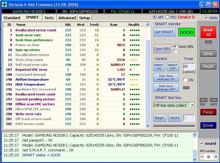 самсунг hd320kj. reported unc errors.. смущает совсем.. сканировать поверхность есть смысл, или сразу на выкид? питание вроде бы ок, померил на молексах - 12.36, 5.11. |
