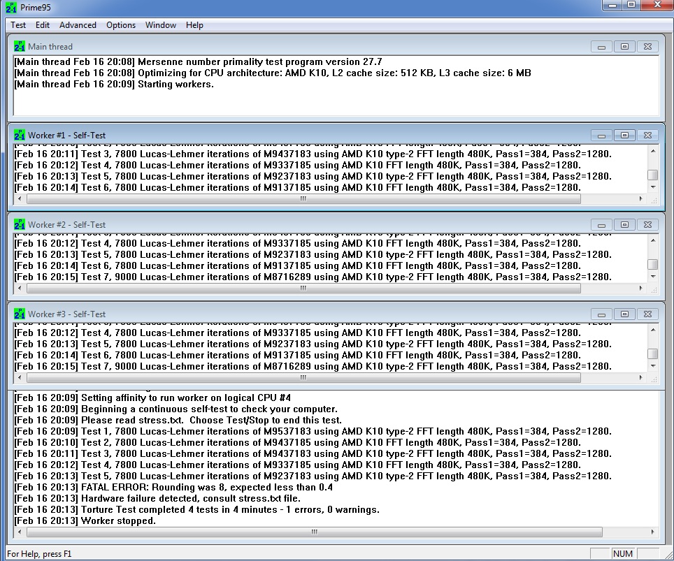 Профиль | Отправить PM | Цитировать Здравствуйте, в некоторых играх после 15 минут постоянно вылетает бсод с этой ошибкой. Все началось с того, что аида тестировала температуру процессораа в критическом состоянии - 75 градусов (ошибок никаких не было). После чего решил прочистить кулер и вообще все в целом. После прочистки температура спала, (до 60). Но начал появляться после этого бсод. Может повредил что-то? делал все осторожно. Проверял память на ошибки - ошибок не было. Решил протетсировать ,как писалось выше , программой prime95 - на 4ом тесте он нашел одну ошибку. (скрин во вложении). Попробовал также поменять термопасту, температура упала до 40 в спокойном состоянии, но ошибка не исчезла.