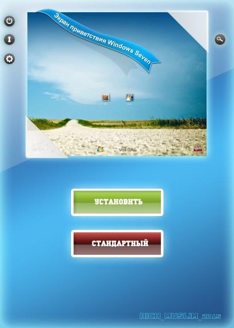Версия: 0.0.7 Тестовая(Возможны ошибки) Дата обновления: 27 Май 2015 Операционная система: Windows XP Статус: Бесплатно (Тестировалась программа на ОС Windows XP Home Edition SP3) Можно установить стиль схожий с windows seven(vista) по умолчанию или изменить изображение экрана приветсвия на любую другую в .bmp формате. А так же можно с помощью 2 клика восстановить стандартный экран приветствия, если новый надоел. Программа не редактирует и не заменяет системные файлы операционной системы! Офф. сайт прог раммы:http://richtools.ucoz.ru/index/0-30 |