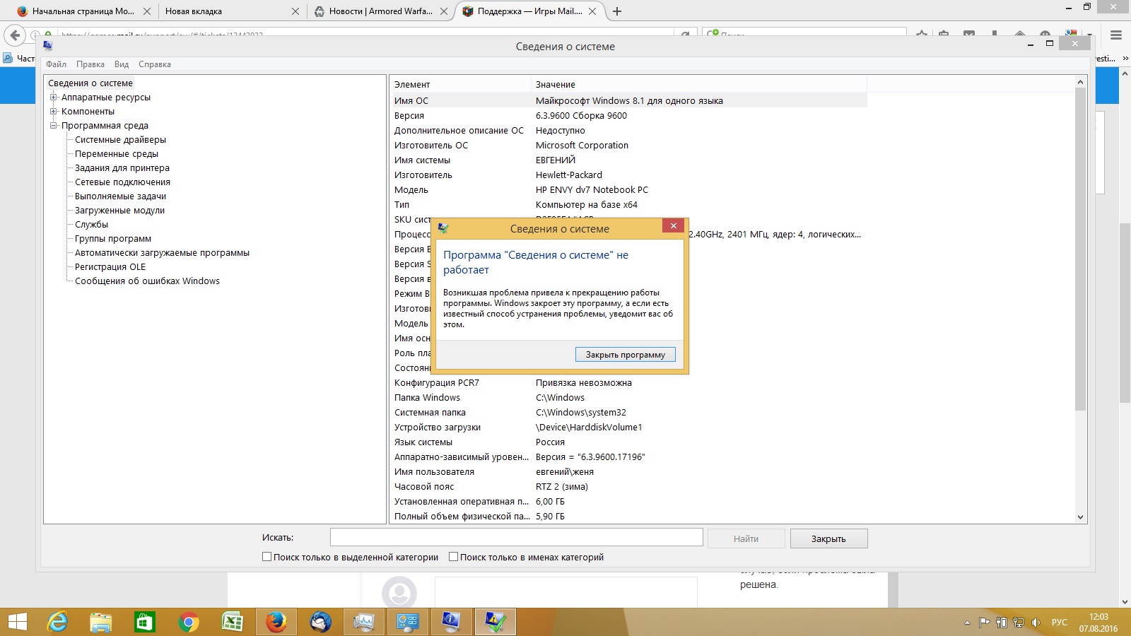 Службы - msinfo32 на W8.1 не удалось найти систему!! Помогите!! podd Microsoft Windows 8 и 8.1 6 02-04-2015 19:28