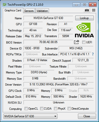 | [решено] nVIDIA GeForce GT 630 | Драйвера? | beSupremebeing | Видеокарты | 21 | 14-01-2015 10:01 | |