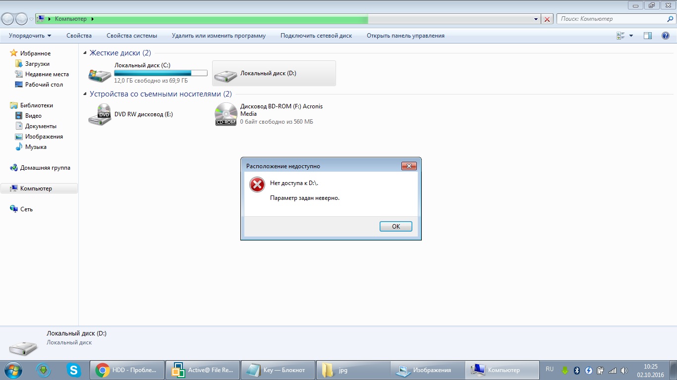 Помогите пожалуйста, через Акронис объединил 2 раздела (на одном была информация другой чистый), все прошло успешно, но по окончанию операции выдало отформатировать я конечно же нажал отмена, теперь локальный диск объединенный не открывается, выдает - "расположение не доступно/нет доступа к диску Д/ параметр задан неверно". В свойствах в графе общие все по нулям и файловая система не отображается. Извините если дублирую тему, но помощь нужна очень срочно, т.к. была важная инфа и ноутбук у знакомых. |