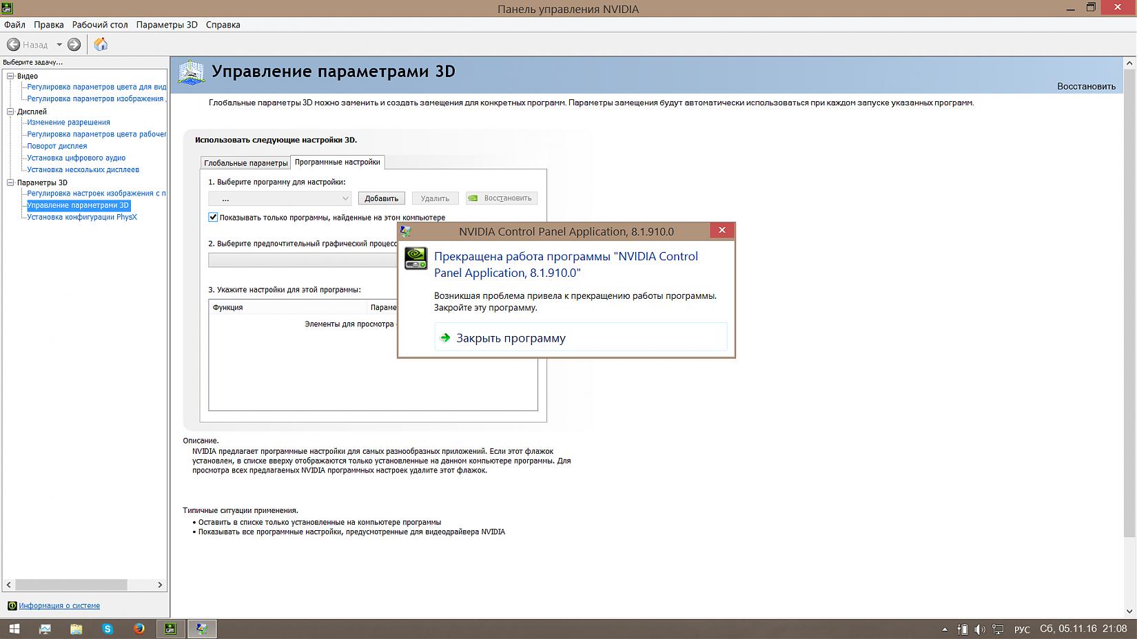 [решено] Прекращена работа Nvidia Control Panel Application 8.1.9.910.0