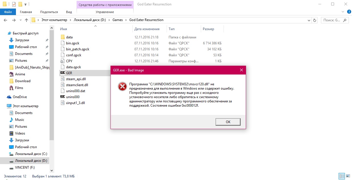 Профиль | Отправить PM | Цитировать Vincent_WD, удалите файл C:\Windows\SysWOW64\MSVCR120.DLL