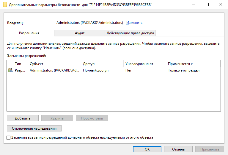 Далее включите флажок Заменить все записи разрешений дочернего объекта и нажмите Применить. |