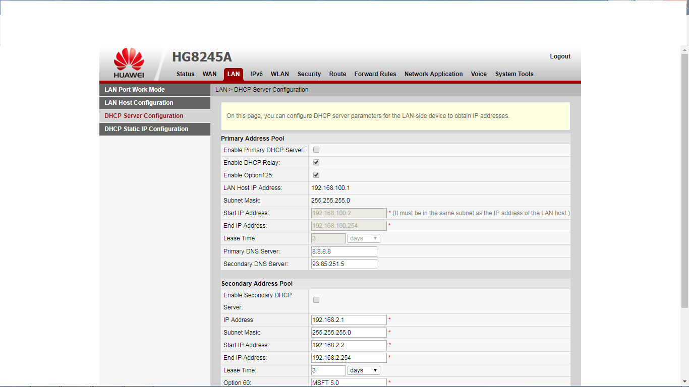 Есть маршрутзатор HUAWEI HG8245A в котором включен DHCP Relay. Windows server 2012 R2 на котором поднят DHCP сервер.