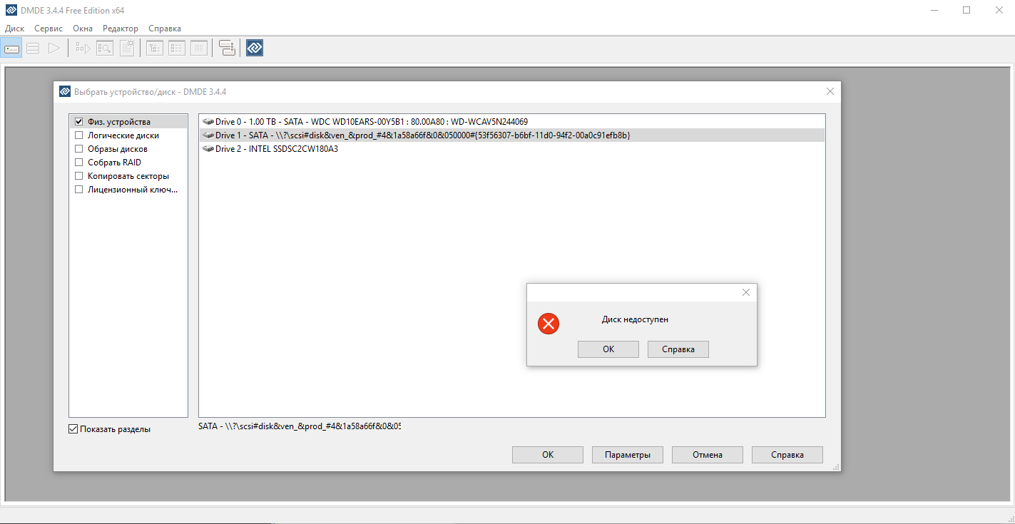 А ваши объяснения и приведённые скриншоты (весьма информативен в этом плане скриншот DMDE) показывают, что система диск вроде бы и видит, но у диска не может быть прочитан даже прожиточный минимум: его паспорт. Т.е. у вас с диском проблема очень серьёзная, и вряд ли её можно решить в домашних условиях. Ну и если бы вы решили пойти на потерю информации и всё же инициализировать диск — получили бы ошибку инициализации. |