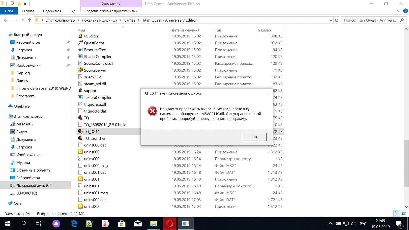 Доброго времени суток. Выручайте, пытаюсь запустить Titan Quest - Anniversary Edition, переустановил Visual C++ Redistributable for Visual Studio 2012 версии x64 и x86, но ошибка та же. Спасибо.