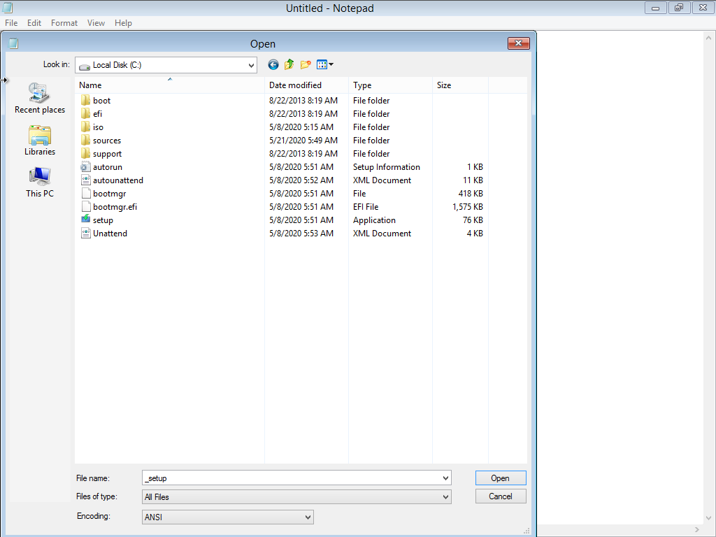 Однако, не удаётся запустить автоматическую установку Windows Server 2012R2 с этим файлом. Проверил этот файл в WSIM (на предмет различий 2012 - 2016), использовав в качестве образа используемый мной ISO Windows Server 2012R2 - никаких замечаний. Никаких логов, о попытках установки. Сразу открывается первое окно настройки языковых параметров. Как будто система не видит этот файл вообще.