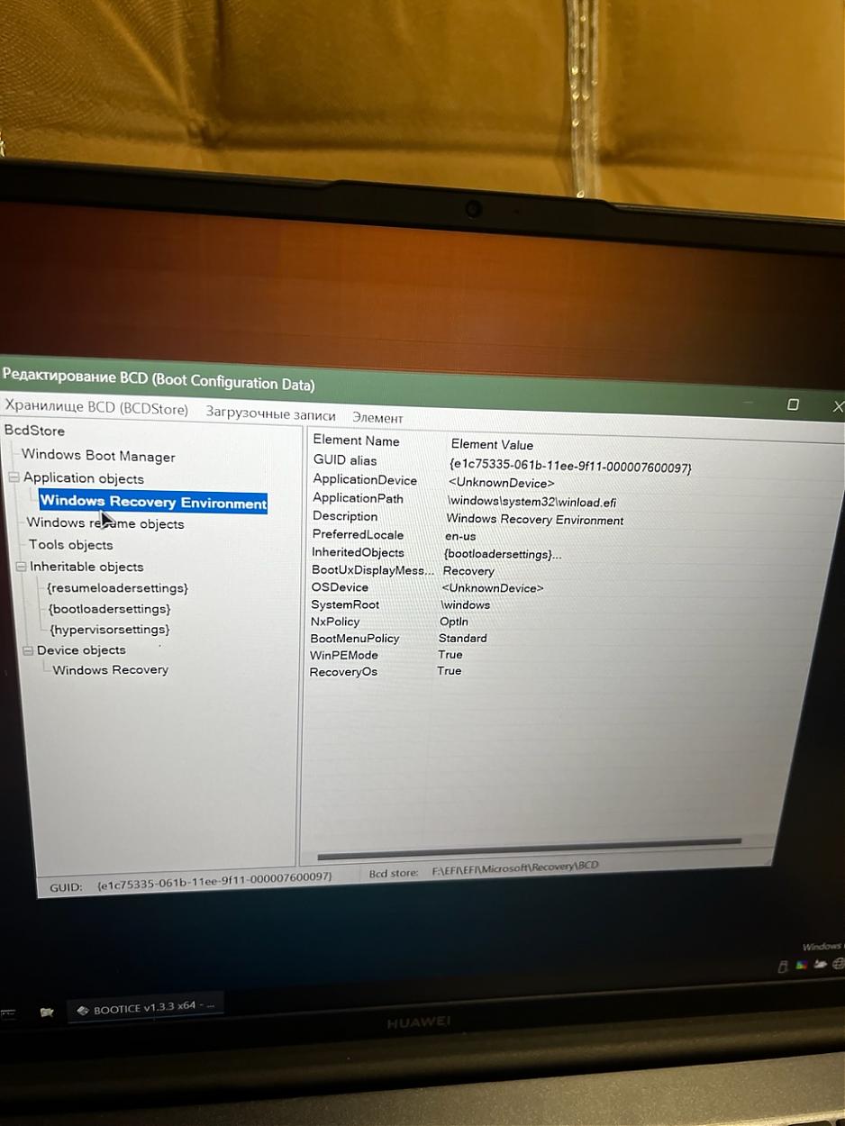 Профиль | Отправить PM | Цитировать У вас же есть LiveCD (StrelecPC, как я понимаю). Назначьте букву ESP-разделу и покажите что на нем есть. BCD-файл с него (если он там будет) можете либо к ответу прикрепить, либо в BootICE открыть и скриншоты сделать с ветки BcdStore (она обычно Windows Boot Manager называется) и все подветки в Application objects.