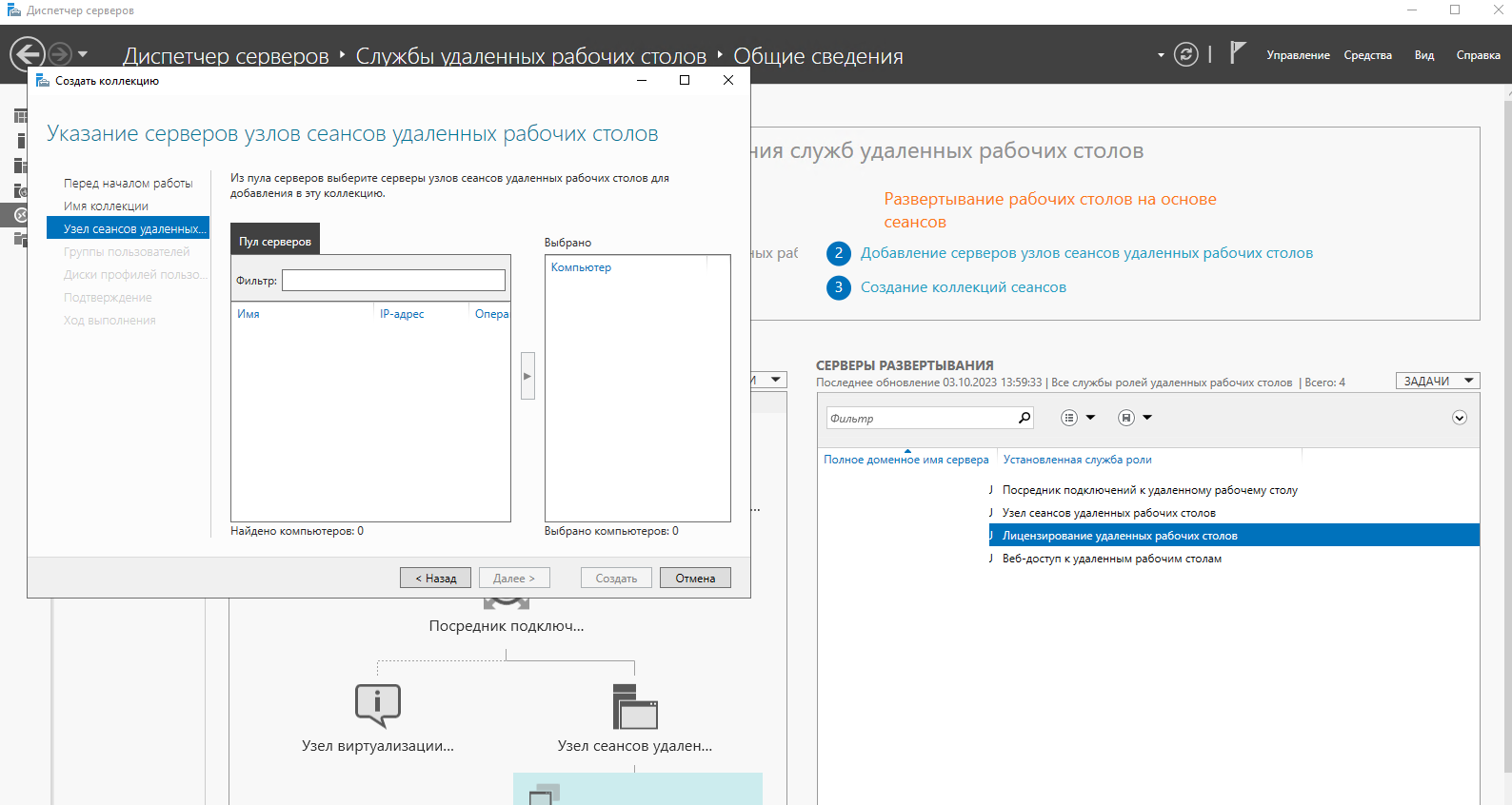 Подскажите запущено опубликовано приложение 1С работает, при попытки добавить новую коллекцию столкнулся с проблемой на шаге "узел сеансов удаленных раб столов" там пусто