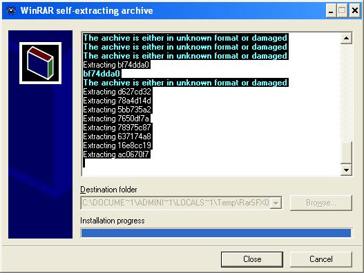 Архив битым скачался. Если у тебя есть разгон, то убери. Могут быть неполадки с памятью. Или вирусы. Выкладывай логи AVZ и HijackThis. |