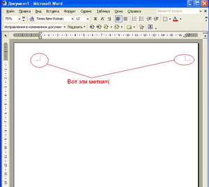 Проблема такакя: после открытия одного документа в Ms Word 2002 появились метки( смотрите рисунок), я не могу от них избавиться=( Переустановка, удаление замена normal.dot, поиск соответствующих галочек в параметрах - все это не помогло Может кто знает как убрать это? Вроде кто-то уже сталкивался с этой проблемой, но поиском я найти не смог=( |