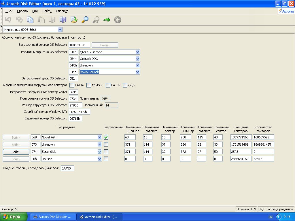 Профиль | Отправить PM | Цитировать CHS - цилиндры, головки, сектора. Секторов всегда 63, цилиндров не помню сколько, но величина тоже скорее всего постоянная, вроде как 1024. Поэтому только число головок и варьируется. Но ничего страшного, эти головки виртуальные, и их может быть очень много.