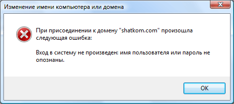 Не удаётся добавить компьютер к домену, пишет: имя пользователя или пароль не опознан