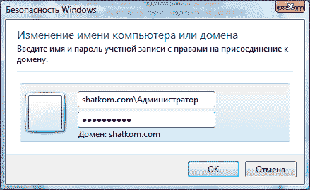 Профиль | Отправить PM | Цитировать Если домен не зарегистрирован то лучше переименовать. А если в имени пользователя вписать shatkom\administrator?