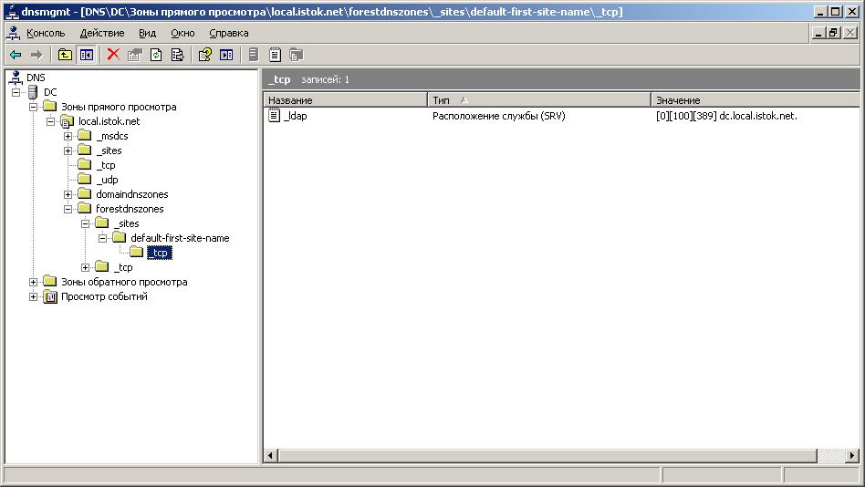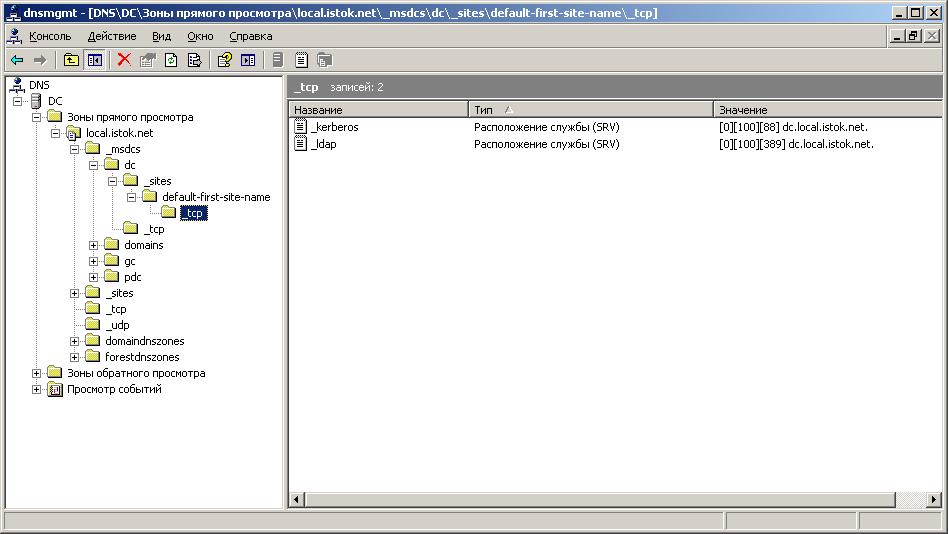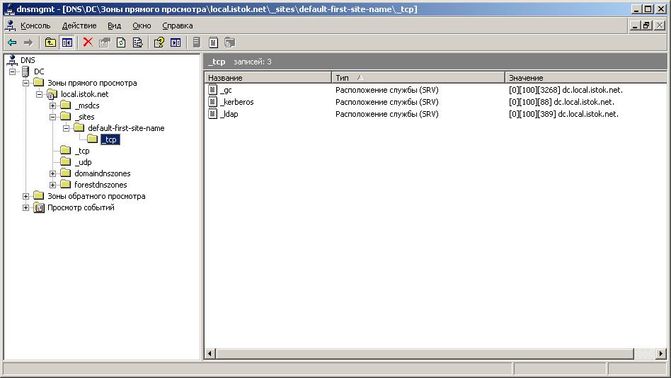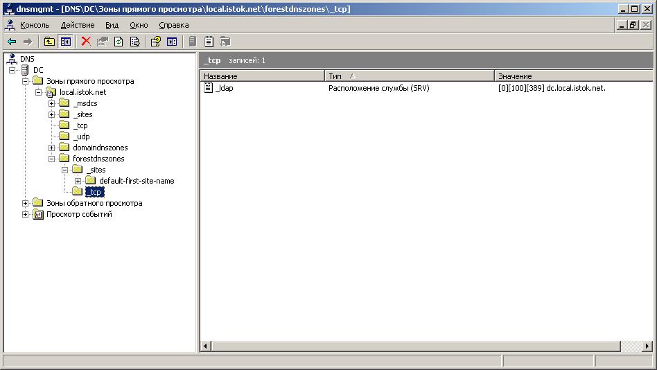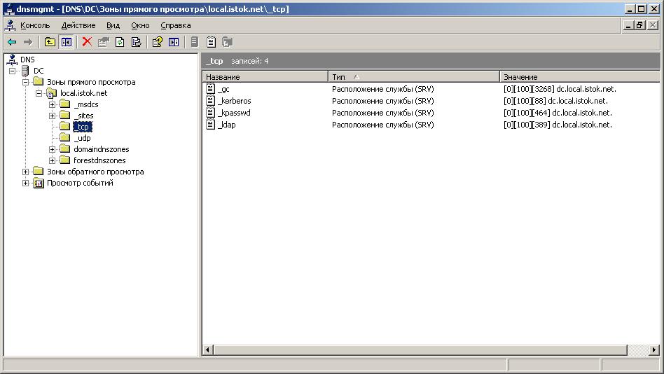 несовсем вас понял. у меня ж вообще такой зоны нету! в консоле ДНС естественно только зона istok.local.net. »