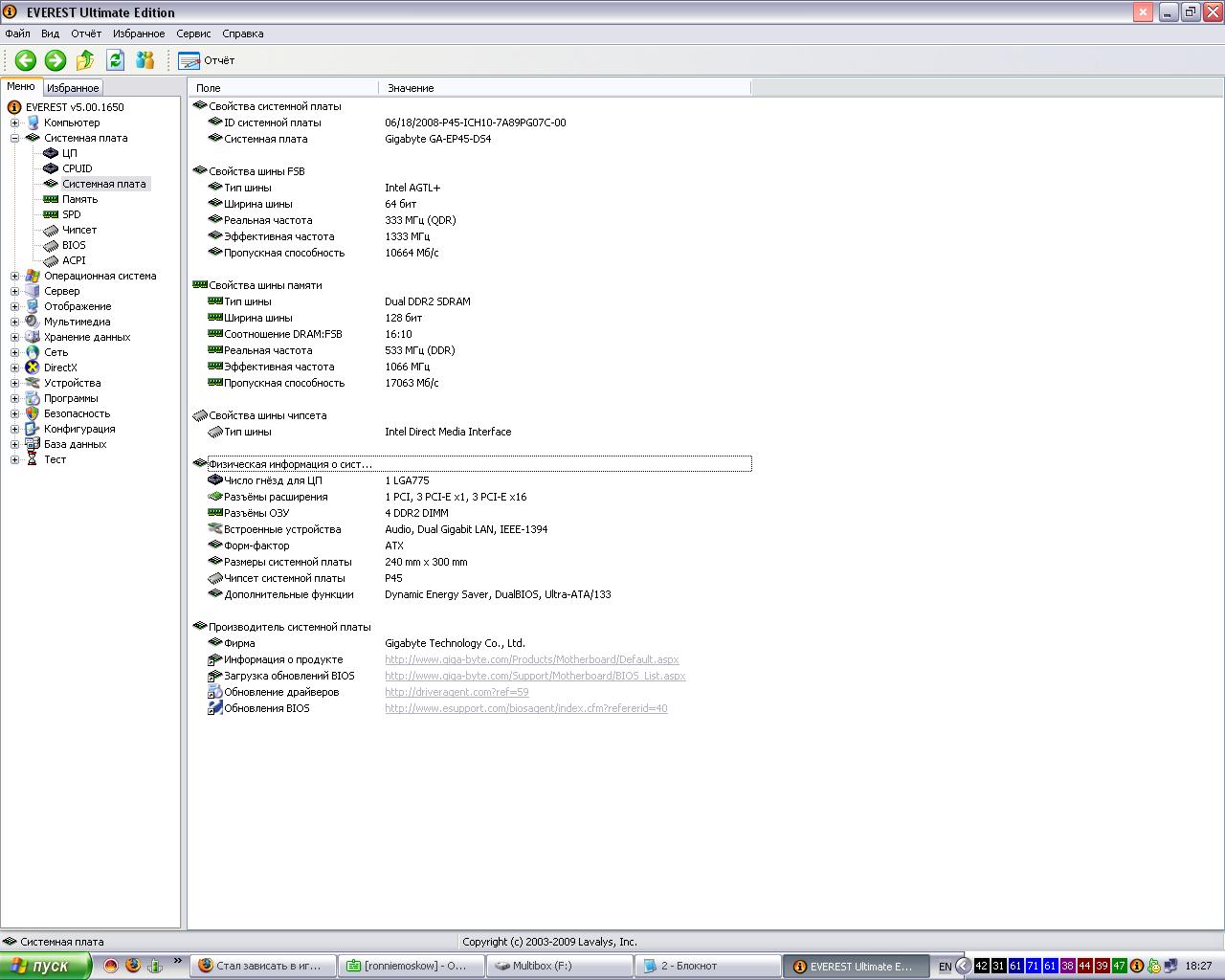 На старом компьютере все было номально. Я чесно не знаю что делать. Единственно мне кажеться это проблема в винчестерах. Они у меня шумят... Моя система: Intel2Duo E8500 320 8800GTS 2x1Gb OCZ 1150MHz 9200 (OCZ2RPR11502GK) МатПлата GA-EP45-DS4 (Rev. 1.0) БП Thermaltake PurePower RX 500W |