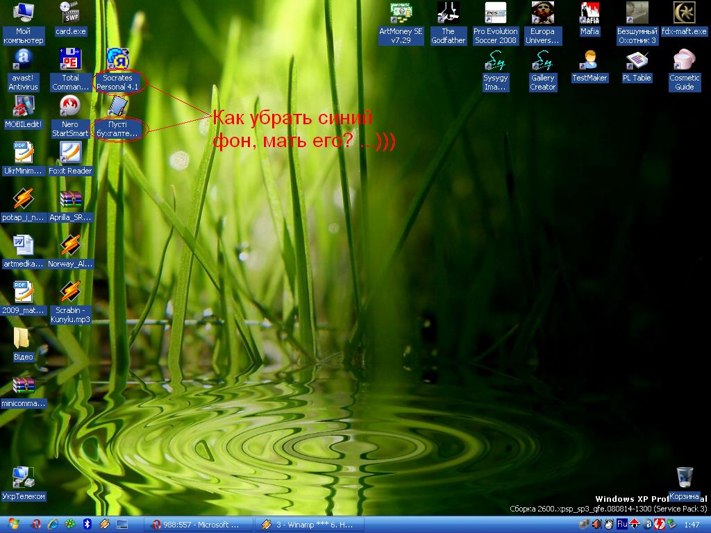 Блин, малый, пока меня не было, что то натворил с машиной и теперь подписи иконок рабочего стола дефилируют на синем фоне... HELP!!! SOS!!! Очень напрягает, ЧТО ДЕЛАТЬ??????
