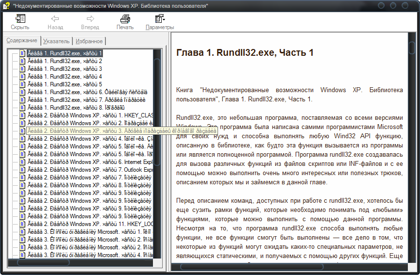 Привет, столкнулся с наболевшим-отображение шрифта. И русский и английский в программах, в которых эта проблема часто возникает работают нормально. Но в файле "*chm" на вкладке "сдержание" абракадабра какая то. В XP все работало, а в Vista глюки. Может есть какой действенный способ решить эту проблему?