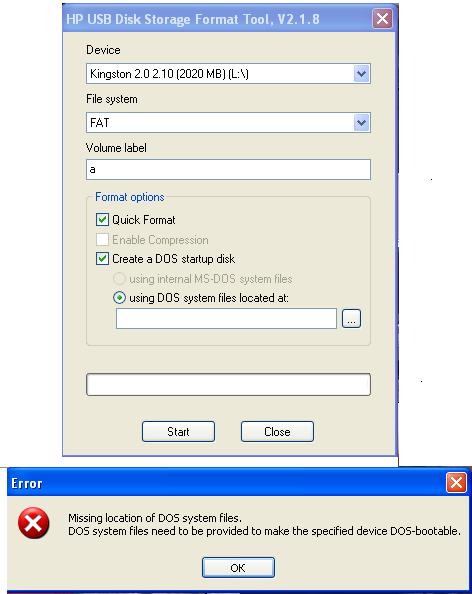 Скачал спец.программу для этого "HP USB Disk Storage Format Tool - v2.1.8"так она не хочет форматировать пока ей не укажешь папку с DOS. |