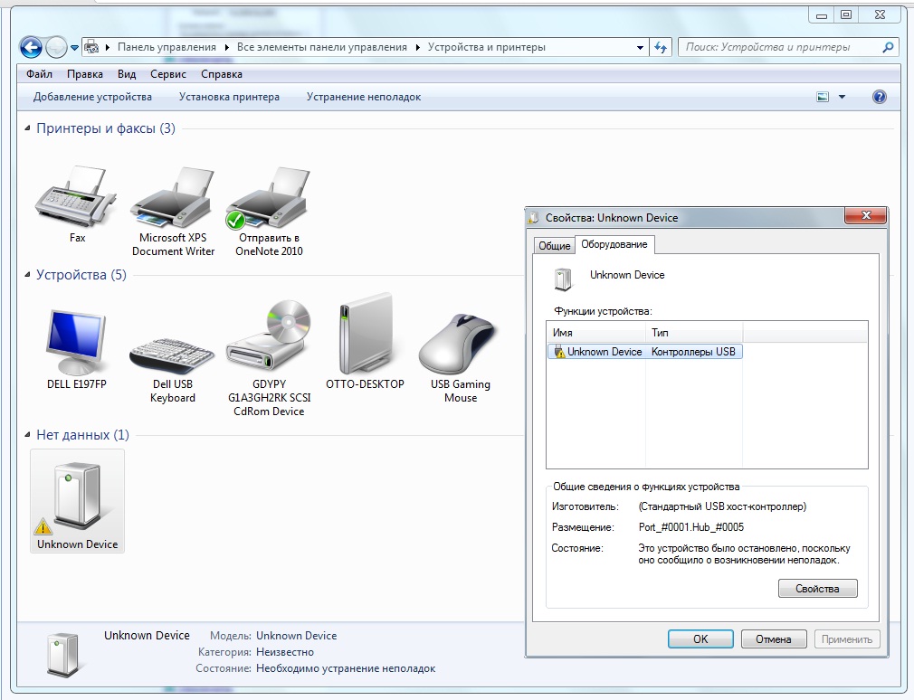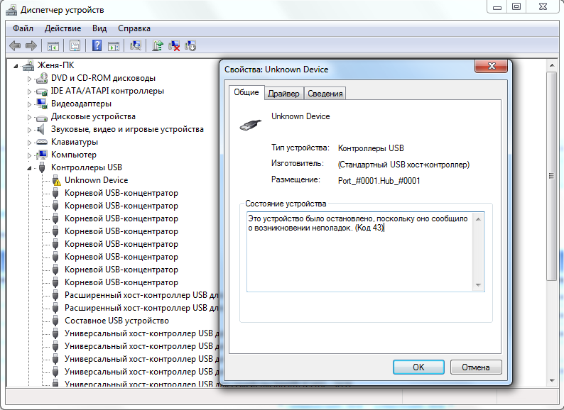 ![]() Описание устройства: Unknown Device ИД оборудования: USB\UNKNOWN GUID класса устройств: {36fc9e60-c465-11cf-8056-444553540000} Ошибка: Это устройство было остановлено, поскольку оно сообщило о возникновении неполадок. (Код 43) ![]() ![]() ![]() ![]() Танцы с бубном, гуглинг и поиск в реестре по GUID натолкнули на мысль заглянуть в "Устройства и принтеры". Аха, принтер отвалился и появился Unknown Device. ![]() Что ж, дёргаем кабель принтера. Отключил-подключил - Unknown Device. Отключил-подключил - Unknown Device. Отключил-подключил - Поддержка USB принтера. ![]() ![]() Так что не надо ограничиваться одним выдёргиванием. Ещё были случаи когда помогало обесточивание системного блока (вытащить вилку из розетки) на полчаса ![]() |