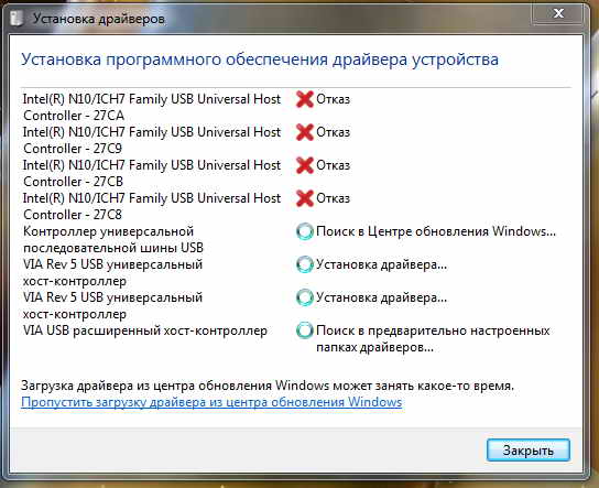 Профиль | Отправить PM | Цитировать Хочу отметить, что я как автор темы, упустил тот момент, что у меня как и у s1r1n при первой же загрузке был запущен Касперский на полную проверку системы, после нахождения штук 10 вирусов и червей, он попросил ребута, и больше usb не прявлялся, также идет лишь питание, напомню, PCI USB контроллер, преобретенный недавно, также ушел в список не установленных.