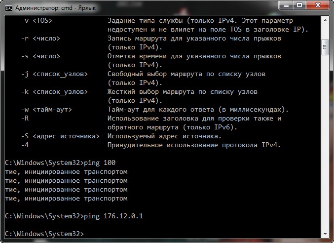 А команда у вас например проходит C:\Windows\System32>TRACERT.EXE 176.12.0.1 |