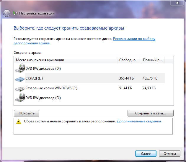 снизу в конце настройки есть галочка включить в архив образ системы и диски C E мне надо только С почемуто Е считает тоже как системный сейчас настроил только на С так как Е физически отключён попробую подключить диск и создать образ не меняя параметров |