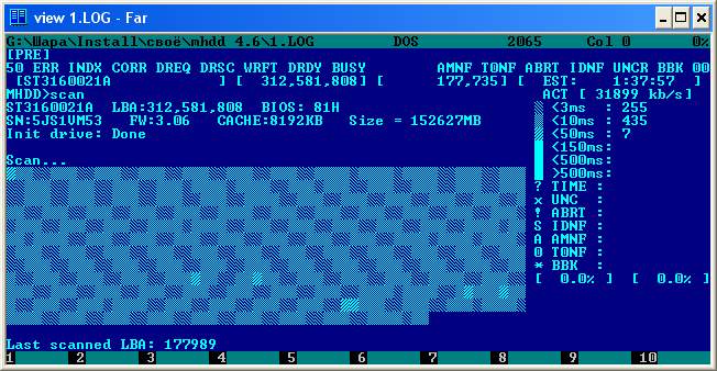 Запускал mhdd 4.6 scan 3 раза - вот прикрепляю 3 начала того что он выдавал. В сервис (Fort-диалог) носил, сказали что неплохо былобы отключить головку, но провели какой-то там scan (с ремапом медленных участков) и сказали что и без отключения - хорошо. Взяли 500рублей, с винтом работать по прежнему никуда не годится, особенно если поставить на него винду. Тормозит в 10 раз и через 0.5 года слетает, причём ТАК, что на логических дисках chkdsk неисправляет некоторые невосстановимые ошибки и зацикливается/прерывается на 26%тах. Поделать тяп-ляп самому как в сервисе и продать - не соответствует моральным принцыпам |