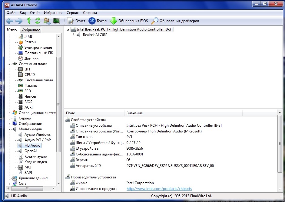 Сначала была ХРюшка, никаких проблем с аудио драйверами. Потом перешёл на 7-ку х32, перестала передняя панель видеть микрофон. После долгих мучительных скачиваний и установок драйверов разных версий с офф-сайта реалтек проблема чудом решилась. В связи с расширением оперативной памяти поставил 7-ку х64, предыдущий вариант "насилования" драверами разных версий уже не помогает. Суть проблемы такова: в программе реалтека отсутствует пункт "отключить определение гнезд передней панели", а так же пару пунктов в "дополнительных настройках устройства" (скрин 1.). Вобщем всё работало нормально на хрюшке и "чудом" на 7-ке х32, а вот щас на х64 никак. Все галочки как у вас в шапке - есть, в биосе разве что High Definition Front Panel Audio можно поставить Disabled и отключить полностью звук. Скринты об устройствах прилагаю. Ид оборудования: HDAUDIO\FUNC_01&VEN_10EC&DEV_0662&SUBSYS_1B0A0001&REV_1001 HDAUDIO\FUNC_01&VEN_10EC&DEV_0662&SUBSYS_1B0A0001 |
