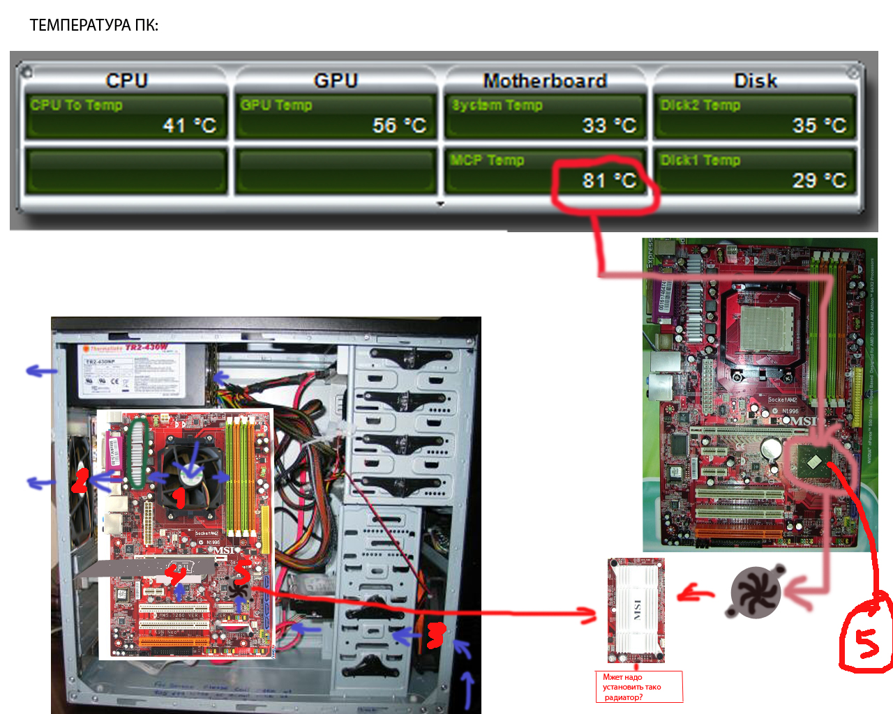 Такая ситуация: все температуры в средне будто в "порядке", но есть один исключение - это (как показывает Nvidia System Monitor) датчик "MCP Temp" (MCP - motherboard chipset), сначала он показывал 100 ° C (такая темпертура светилась красным) , после анализа, что именно греется пришел к выводу, что это шина HT (Похоже, это температура южного моста), после смены темопасты между HT и его куллером температура в средне 85-88 ° C, но это заумовы, что показатель HT не превышает 400-600MHz, при увеличении его до 1000MHz - средняя тепереатура увеличивается до 88-92 ° C, как поступить в такой ситуации (на формух пишут, что (Обычно допустим где-то до 80-85 °).