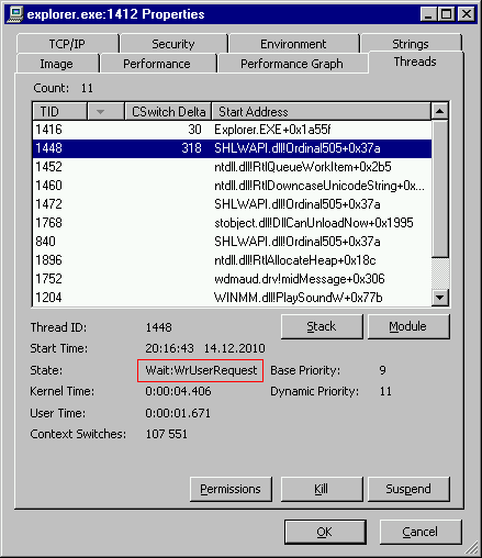Так же это можно повторить и на обычном компьютере, если убрать возможность "Обход перекрестной проверки" и залогиниться как обычный пользователь без прав администратора. А так лучше всего вам взять FileMon, RegMon или Process Monitor от SysInternals, просканировать explorer.exe и посмотреть, что делает explorer.exe в момент зависания. |