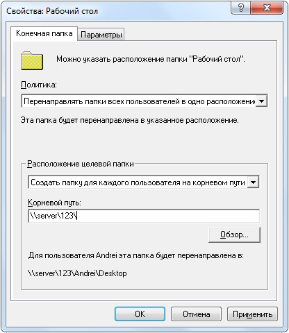 Нужно, чтобы была папка пользователя допустим Pupkin\profile\desktop а он по умолчанию делает папки сразу в дериктории пользователя Pupkin\desktop в 2003 можно было написать переменную %username%, тут такое не получается! |