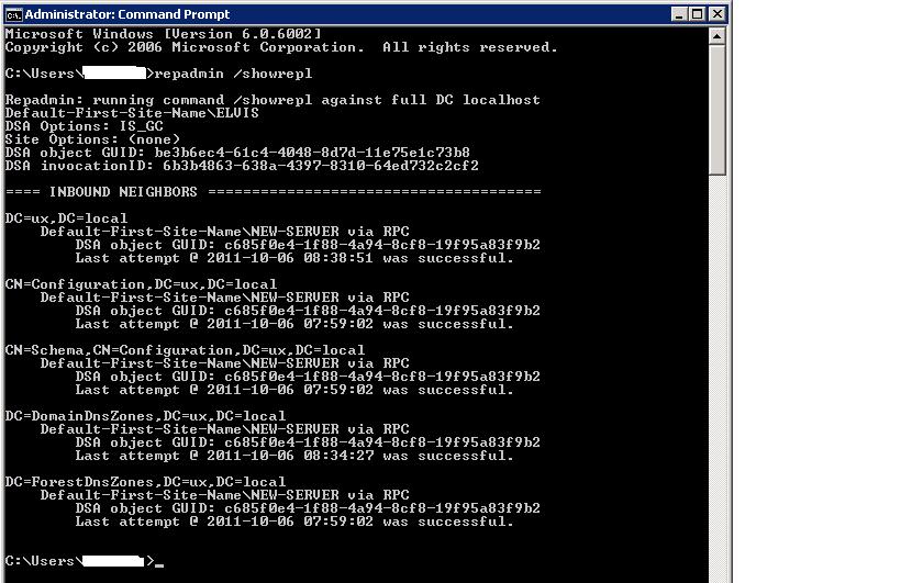 По совету Ivan Bardeen давайте выполним команду repadmin /showrepl на new-server. Цитата Kaimor: