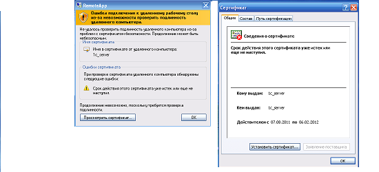 Всем привет!дело такое чрез rdp протокол на терминал сервер подключается клиентская машина, просит установить сертификат безопасности. когда начинаешь устанавливать говорит что сертификат не действителен или истек срок!со сроком все нормально и до этого я устанавливал этот сертификат все работало нормально! но периодически он ругается так!!бывает не просит!бывает ругается!пишет типа с сертификатом что то не так!! есть скрин посмотрите!буду благодарен!